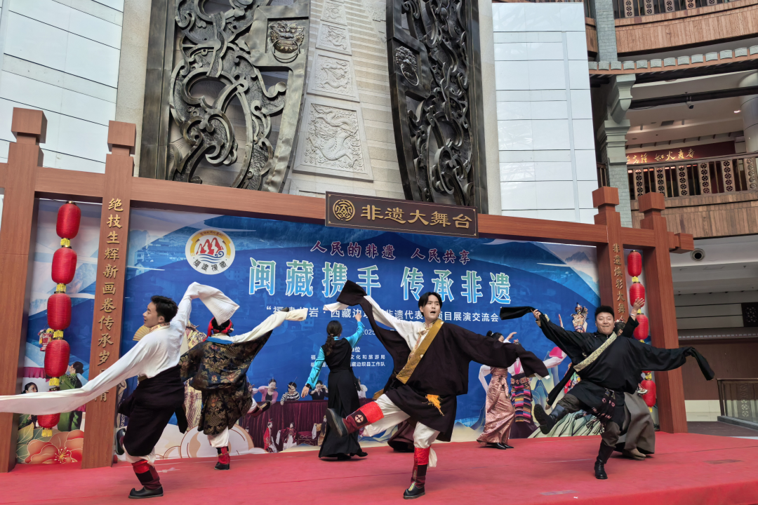 活动现场精彩纷呈,龙岩剪纸的精巧灵动、客家木偶戏的活灵活现,与边坝锅庄的热情奔放、格萨尔说唱的古朴厚重轮番登台,赢得现场观众阵阵掌声。