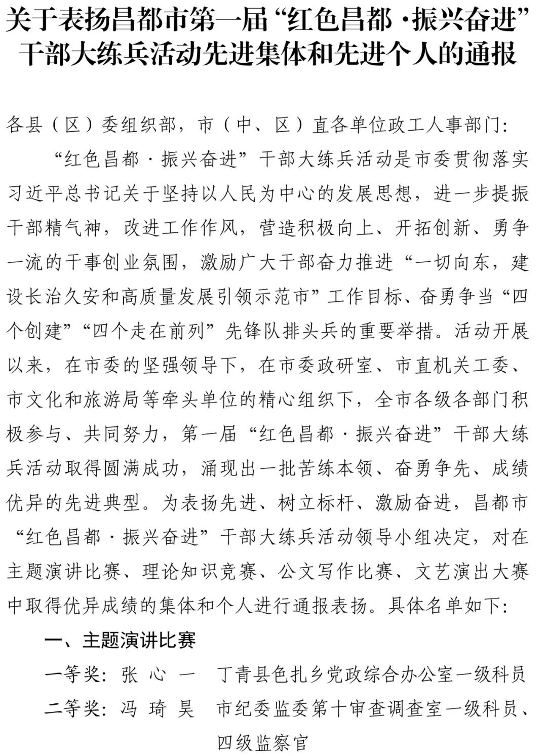 关于表扬昌都市第一届“红色昌都·振兴奋进”干部大练兵活动先进集体和先进个人的通报