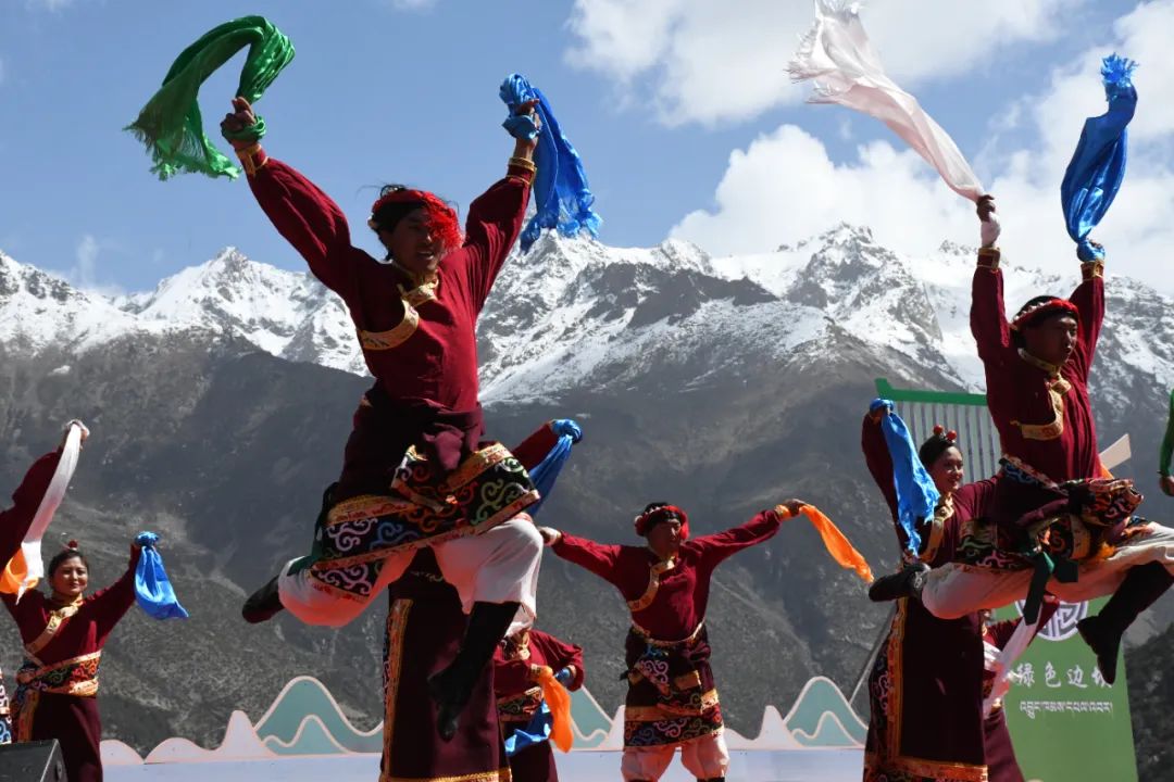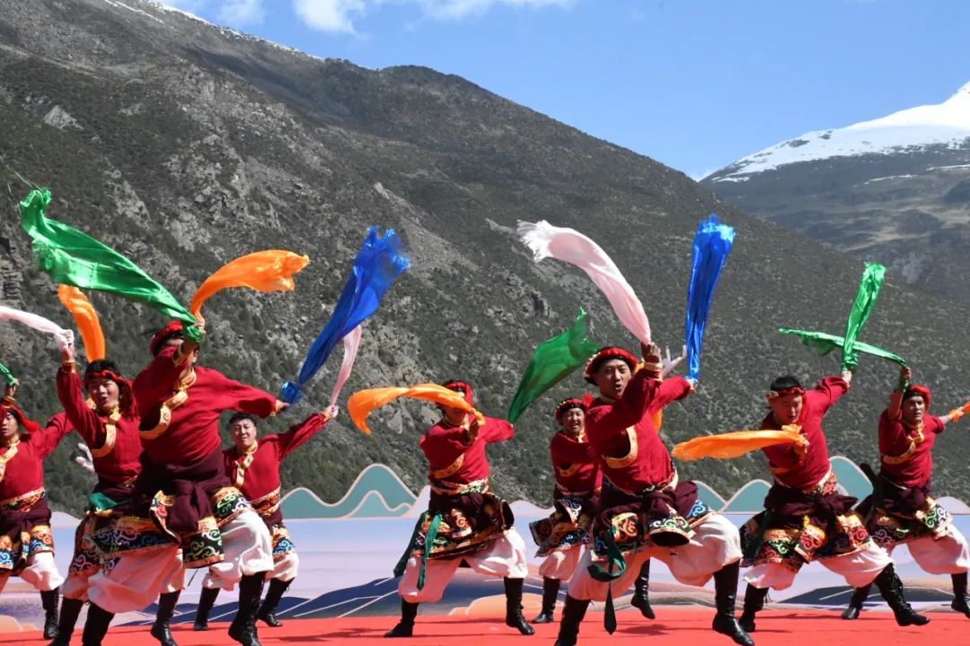 开幕式现场,文艺汇演精彩纷呈,“高山杜鹃、傲立雪域”“物华天宝、人杰地灵”“真金练就、红色血脉”三个篇章数十个节目依次亮相,“国庆热巴”“岭·格萨尔艺人之乡”等精彩的文艺表演和民俗展示展现了独特的文化魅力和民族风情,并将开幕式气氛推上了一个又一个高潮。