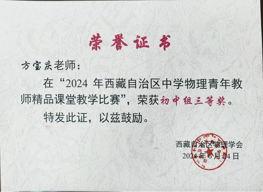 为了更好地服务学校教育教学,引领课程教学改革,提高教育教学质量,服务教师专业成长,指导教师改进教学方式,提高教书育人能力,今年5月西藏自治区物理学会在拉萨举办了“2024 年西藏自治区中学物理青年教师精品课堂教学比赛”。