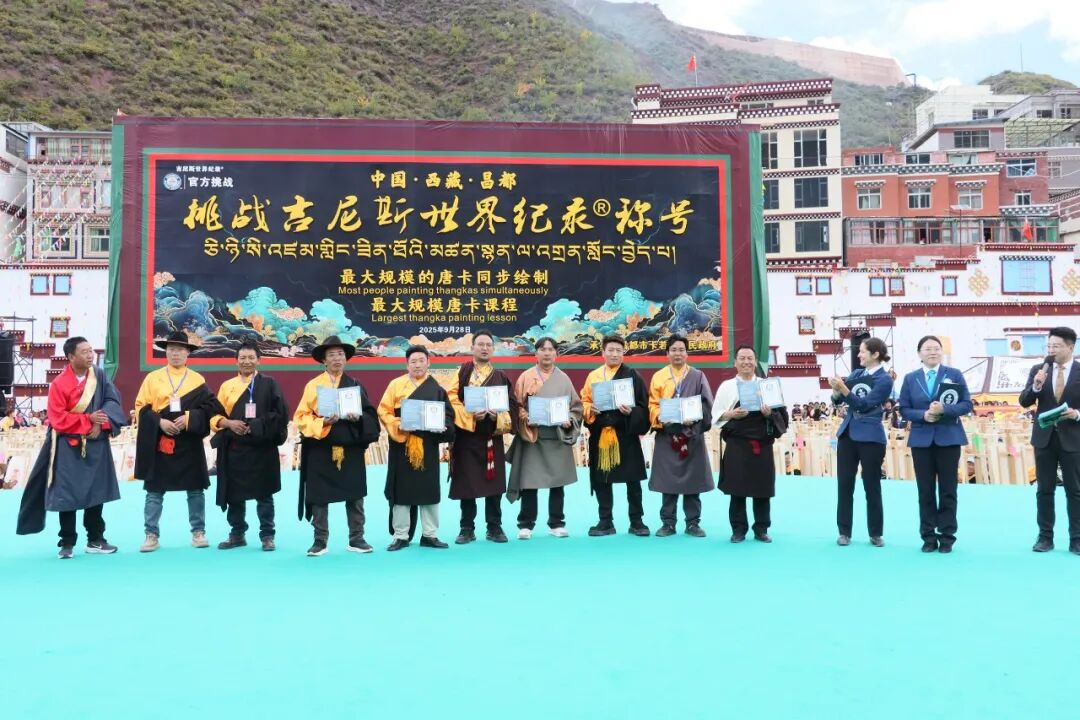 随后,吉尼斯世界纪录官方向参加挑战活动的昌都市唐卡各画派代表颁发了“吉尼斯世界纪录保持者”证书!新的世界纪录是1138人,在成功打破原世界纪录1005人的同时,还创造了“最大规模唐卡课程”新的世界纪录!