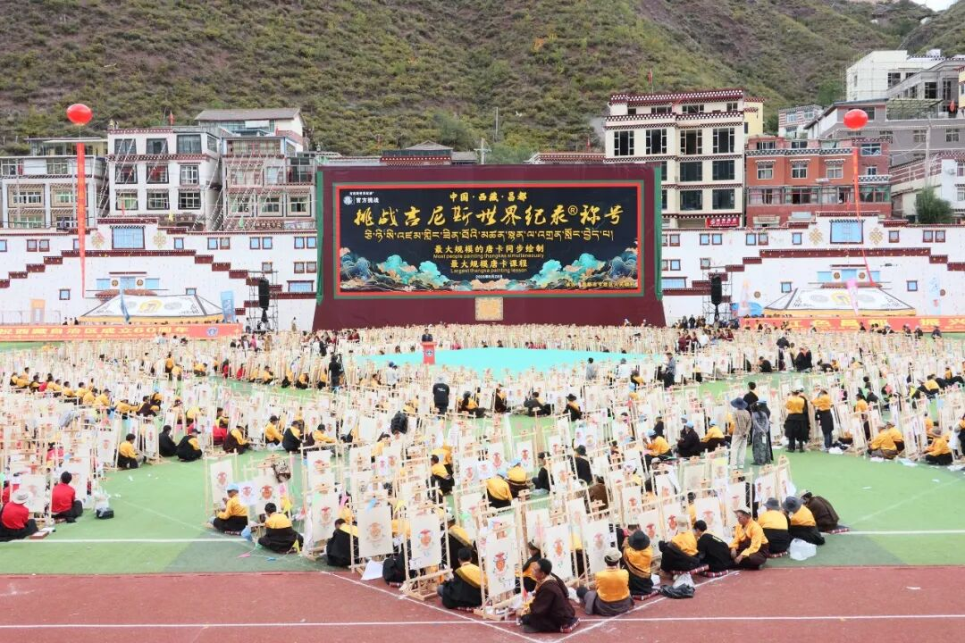 9月28日,由市委、市政府主办,卡若区委、区政府承办的“最大规模的唐卡同步绘制”“最大规模唐卡课程”吉尼斯世界纪录挑战活动在津昌体育文化中心成功举办!来自全市各地的上千名唐卡画师汇聚一堂,聆听大师点拨、绘制唐卡作品,成功挑战“最大规模的唐卡同步绘制”“最大规模唐卡课程”两项吉尼斯世界纪录!