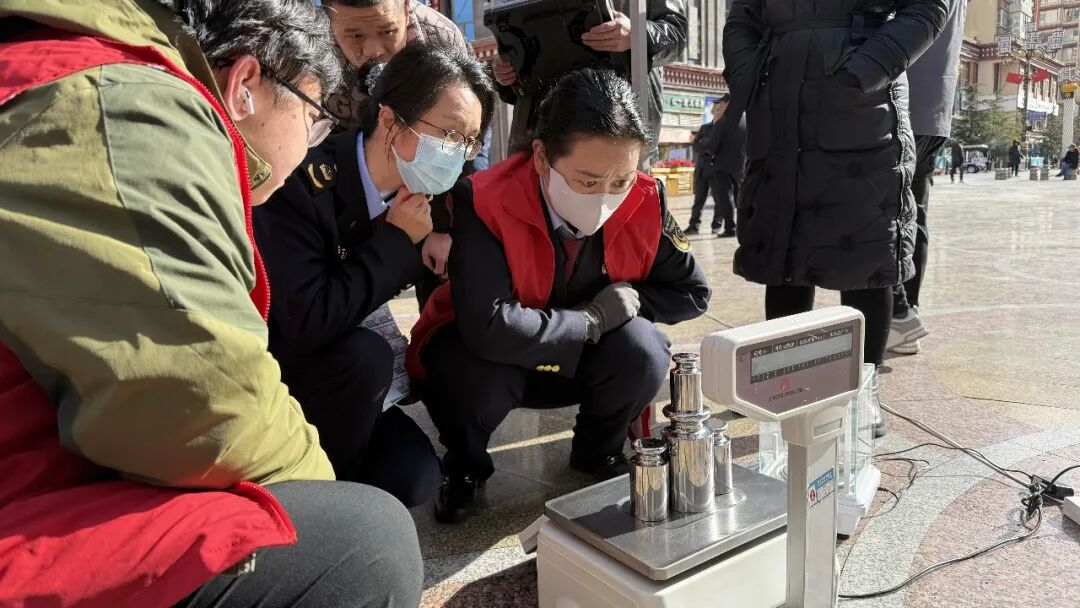 图为昌都市市场监督管理局为经营主体开展计量器具检定服务。