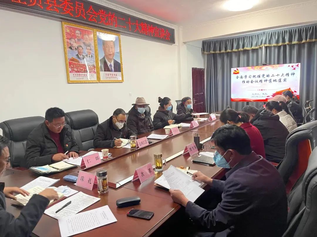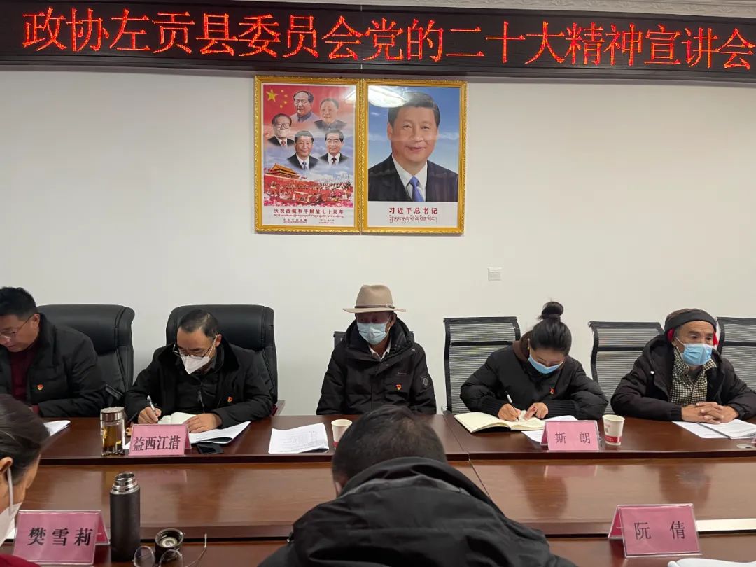 根据县委统一部署,为持续推动党的二十大精神的深入学习宣传,结合全县政协工作实际,11月11日,左贡县政协组织召开政协系统党的二十大精神宣讲会,县政协党组书记、主席珠扎面向党组成员、机关干部、政协委员作了题为《全面学习把握党的二十大精神 推动会议精神落地落实》的宣讲解读。 县委常委、县政协党组副书记、统战部长仁郎主持会议。
