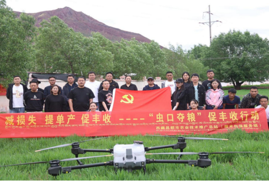 5月30日,市农推总站技术包保组首先深入察雅县荣周乡佐通村,充分利用第三方无人机技术开展二级良繁田“喜马拉22号”“藏青2000”除草作业。飞防作业作为一种现代化的农业作业方式,具有作业效率高、覆盖面积广、操作灵活、省时省力等特点。在除草作业中,无人机搭载先进的除草剂(爱秀,千里寻),精准喷洒至农作物田地,有效清除田间杂草,为农作物生长创造了良好的环境。