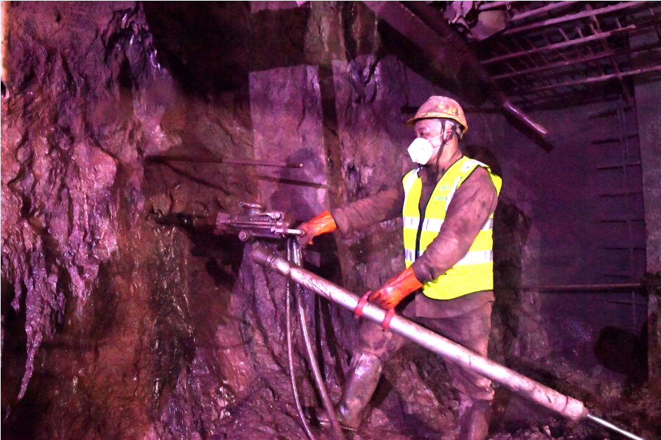 在沙益一号隧道里,工人正在开展钻爆作业。