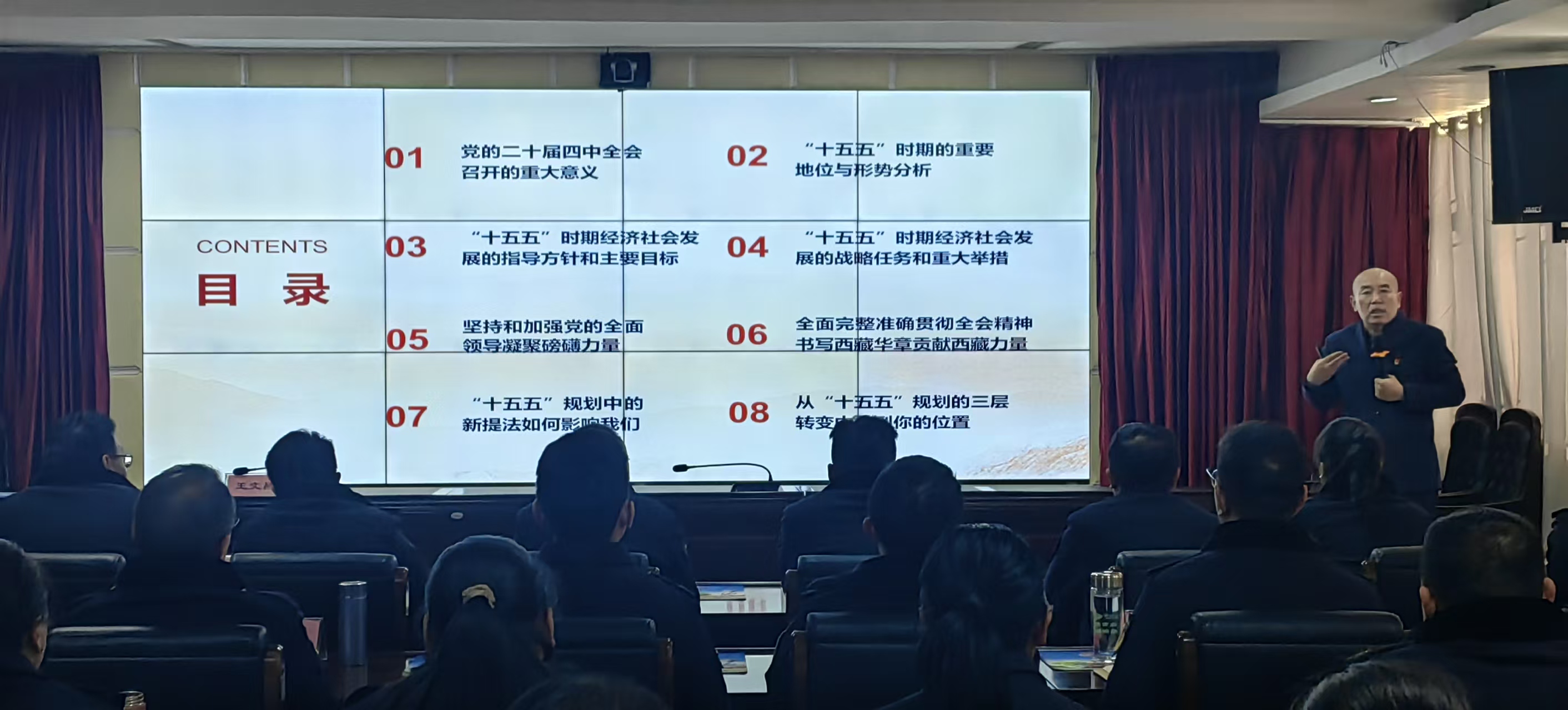 宣讲会上,王文昌同志围绕党的二十届四中全会的重大意义、准确把握“十五五”时期重要地位与形势分析、深刻领会“十五五”时期经济社会发展的指导方针和主要目标、全面理解“十五五”时期经济社会发展的战略任务和重大举措、坚持和加强党的全面领导、书写西藏华章贡献西藏力量、规划新提法的深远影响、找准目标定位八个方面作了全面宣讲和系统阐释。整场宣讲主题鲜明,内容丰富、旁征博引、深入浅出,与会人员认真聆听,深受启发,受益匪浅。