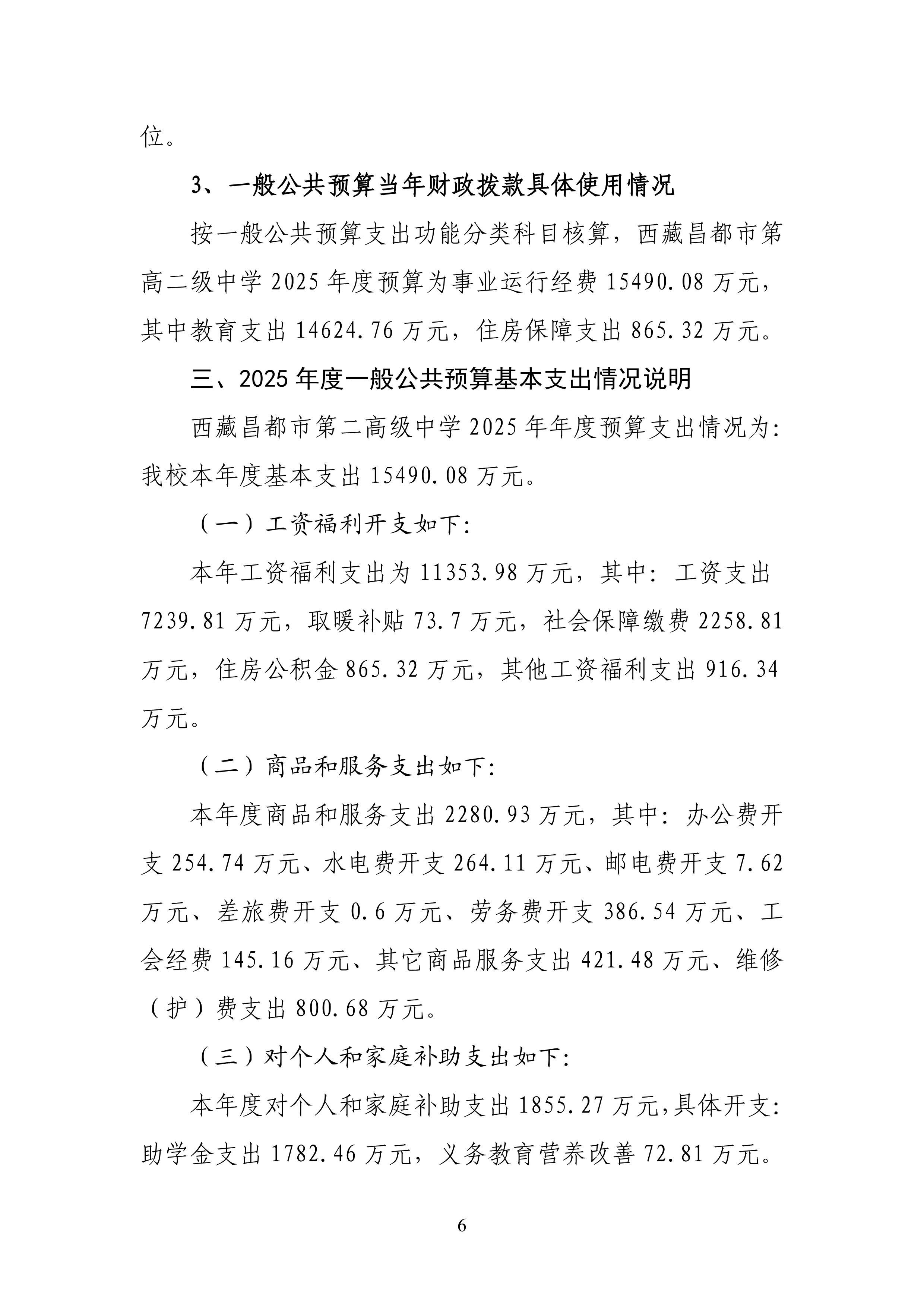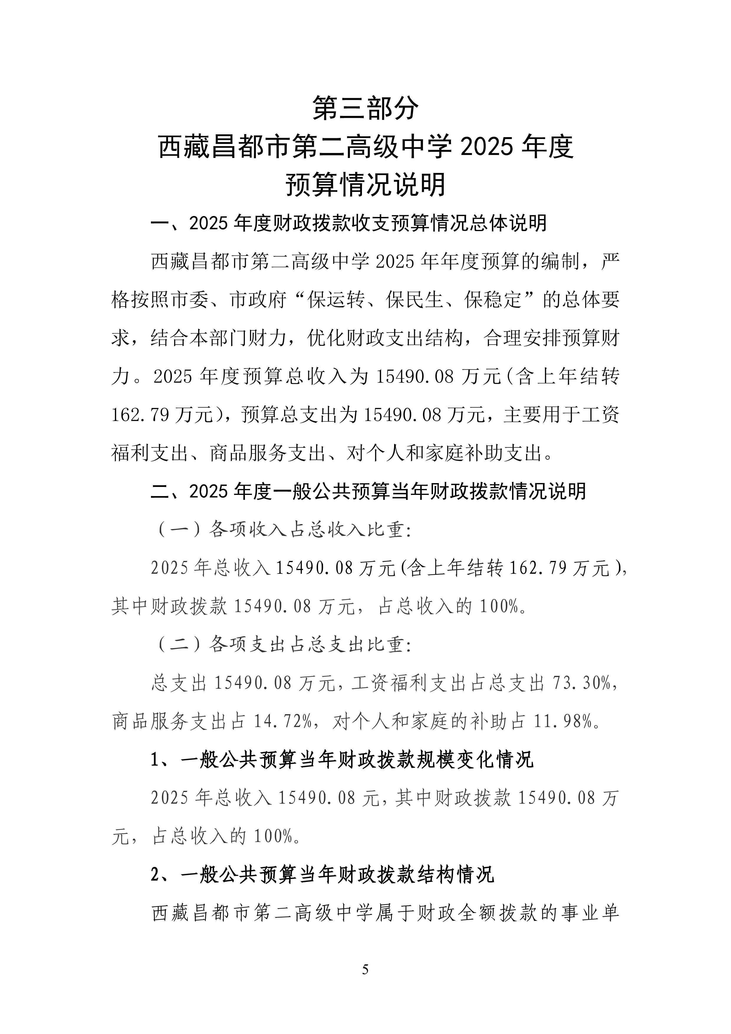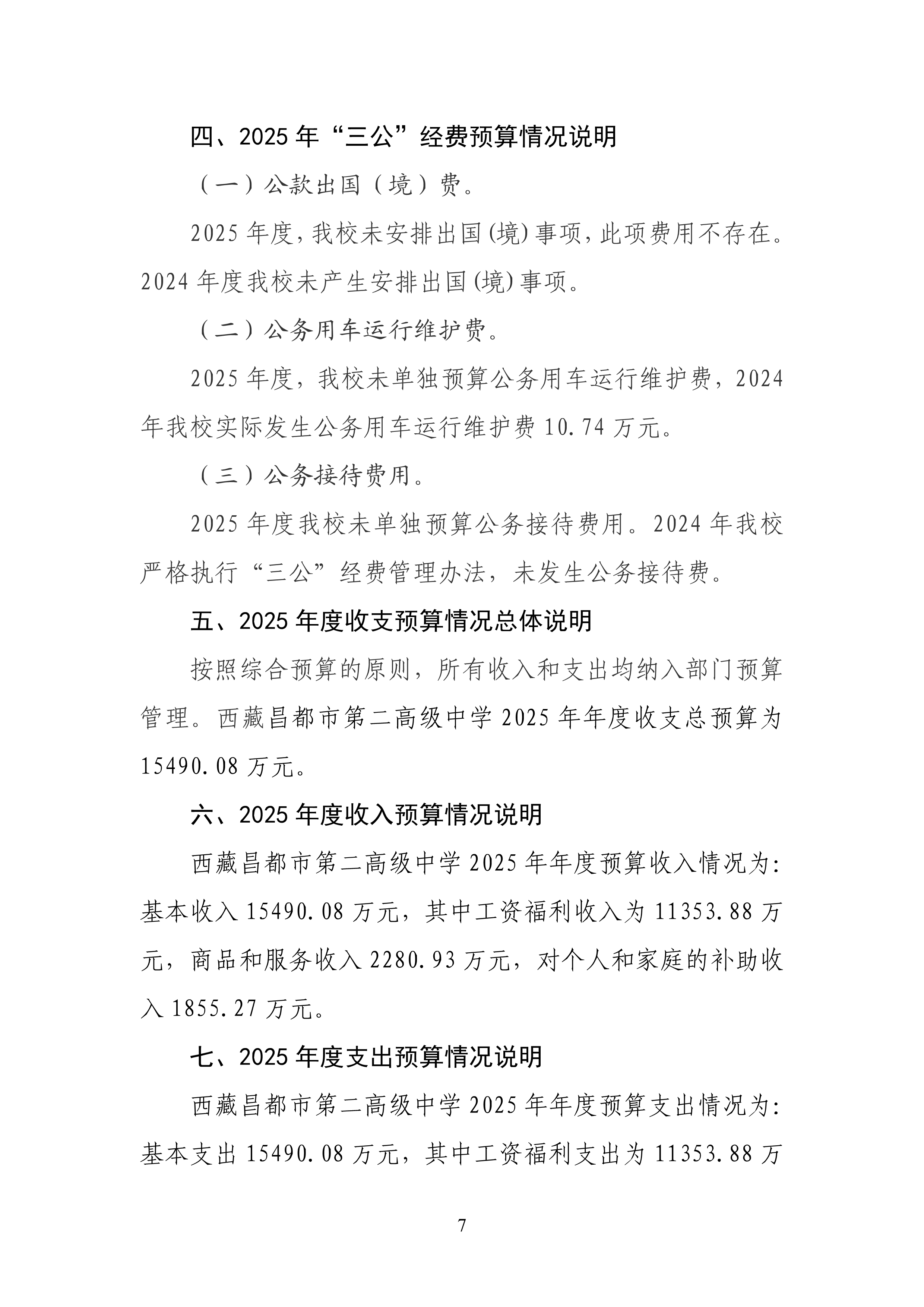 西藏昌都市第二高级中学2025年度部门预算公开明细表
