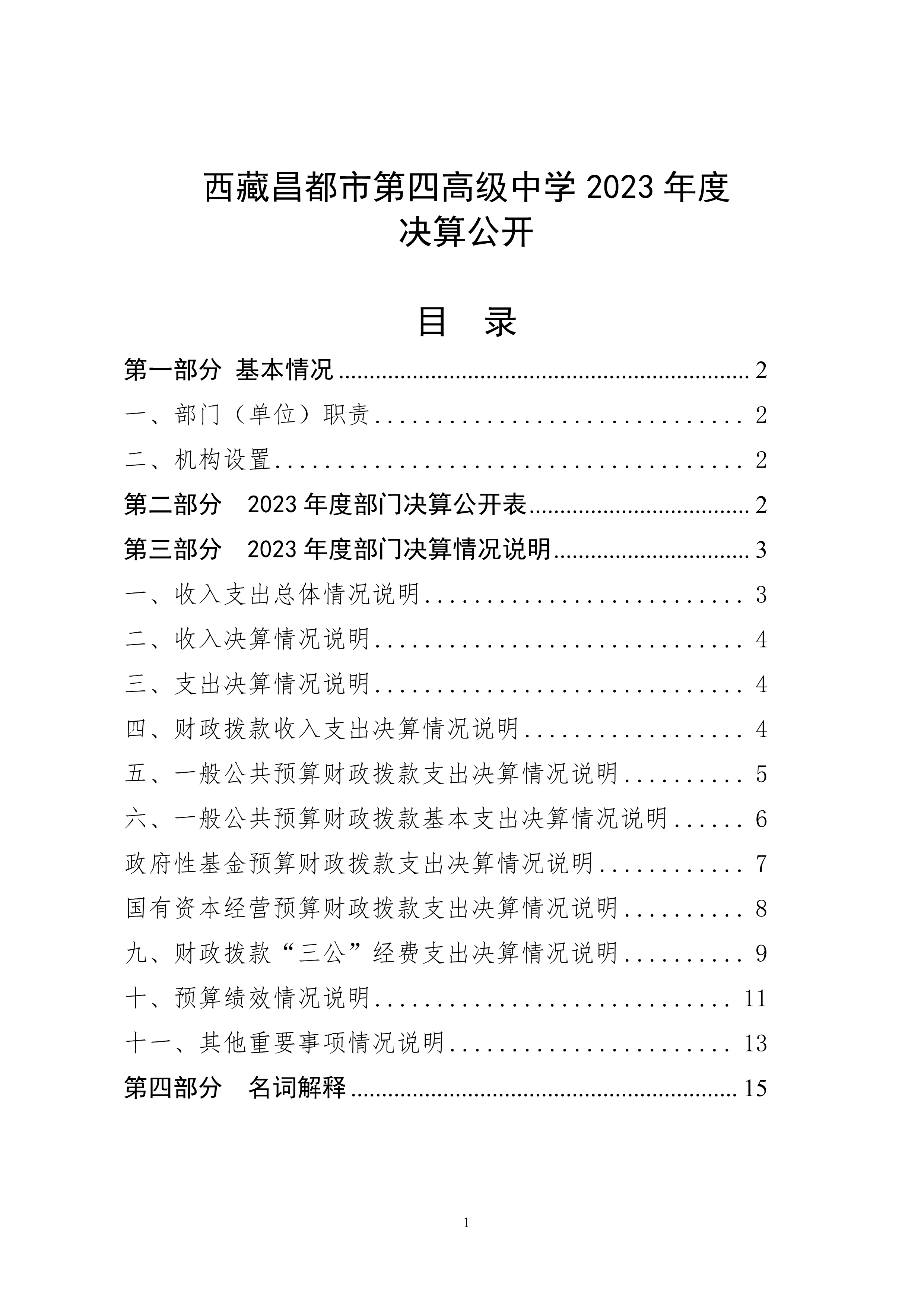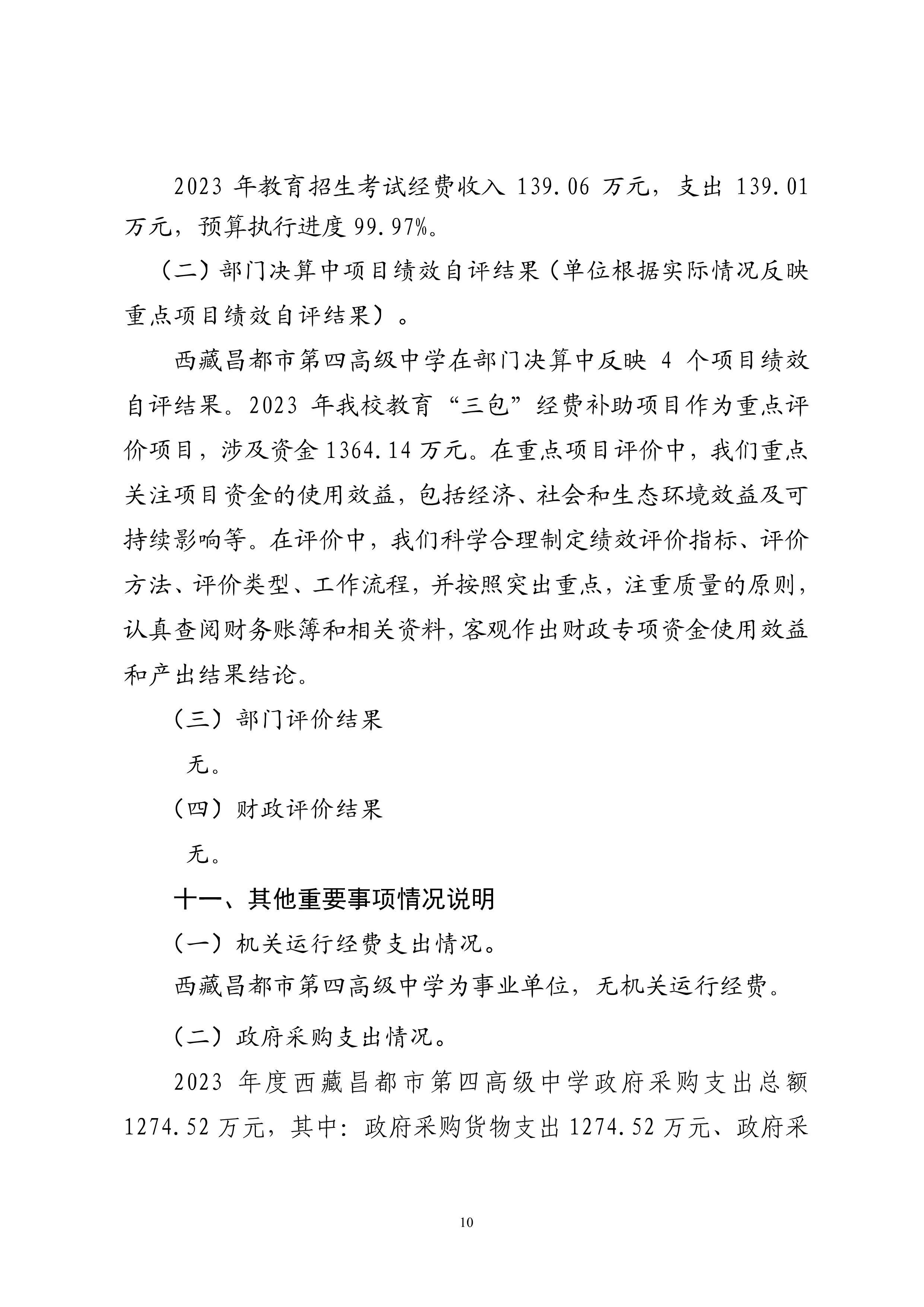 西藏昌都市第四高级中学2023年度决算公开