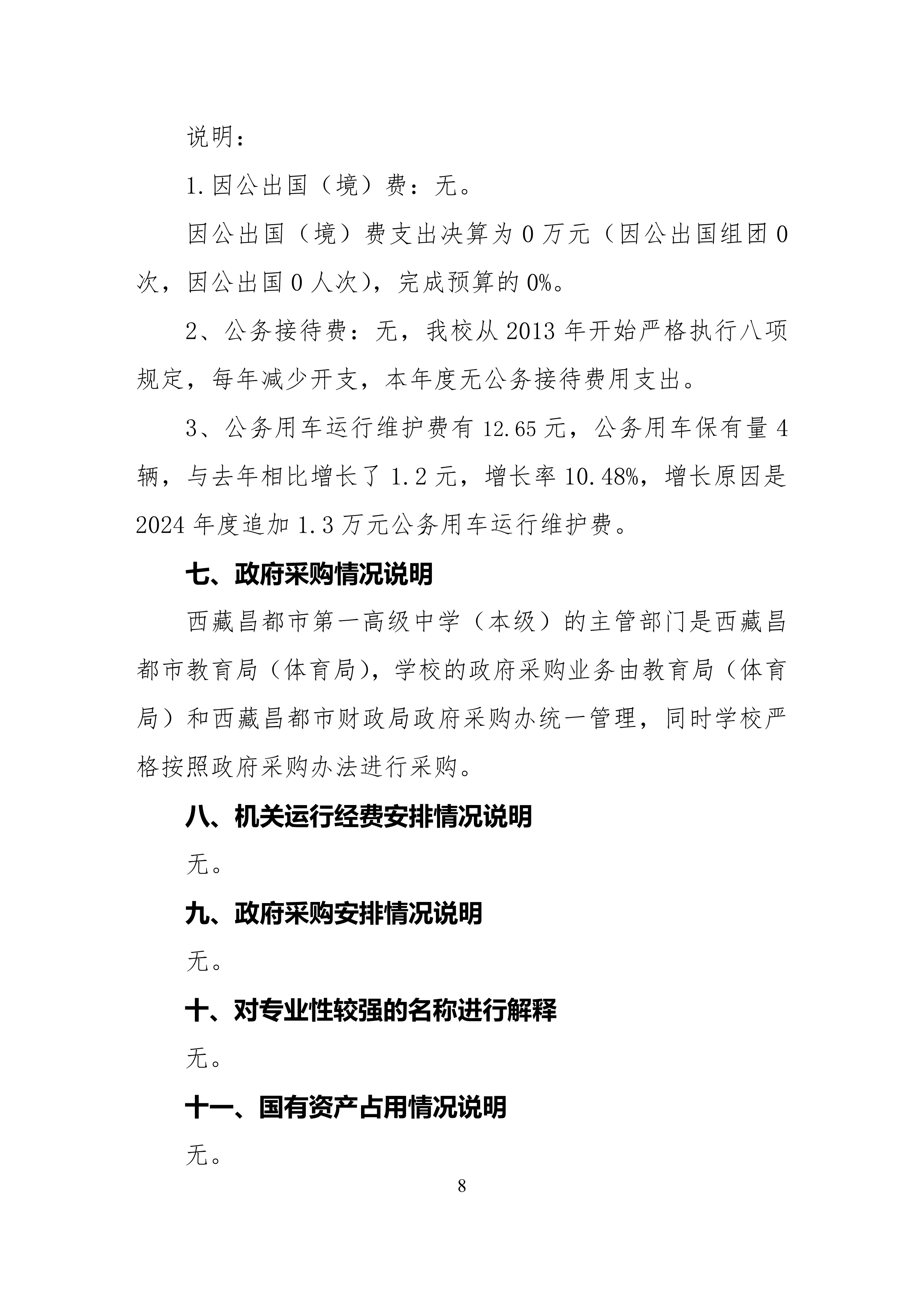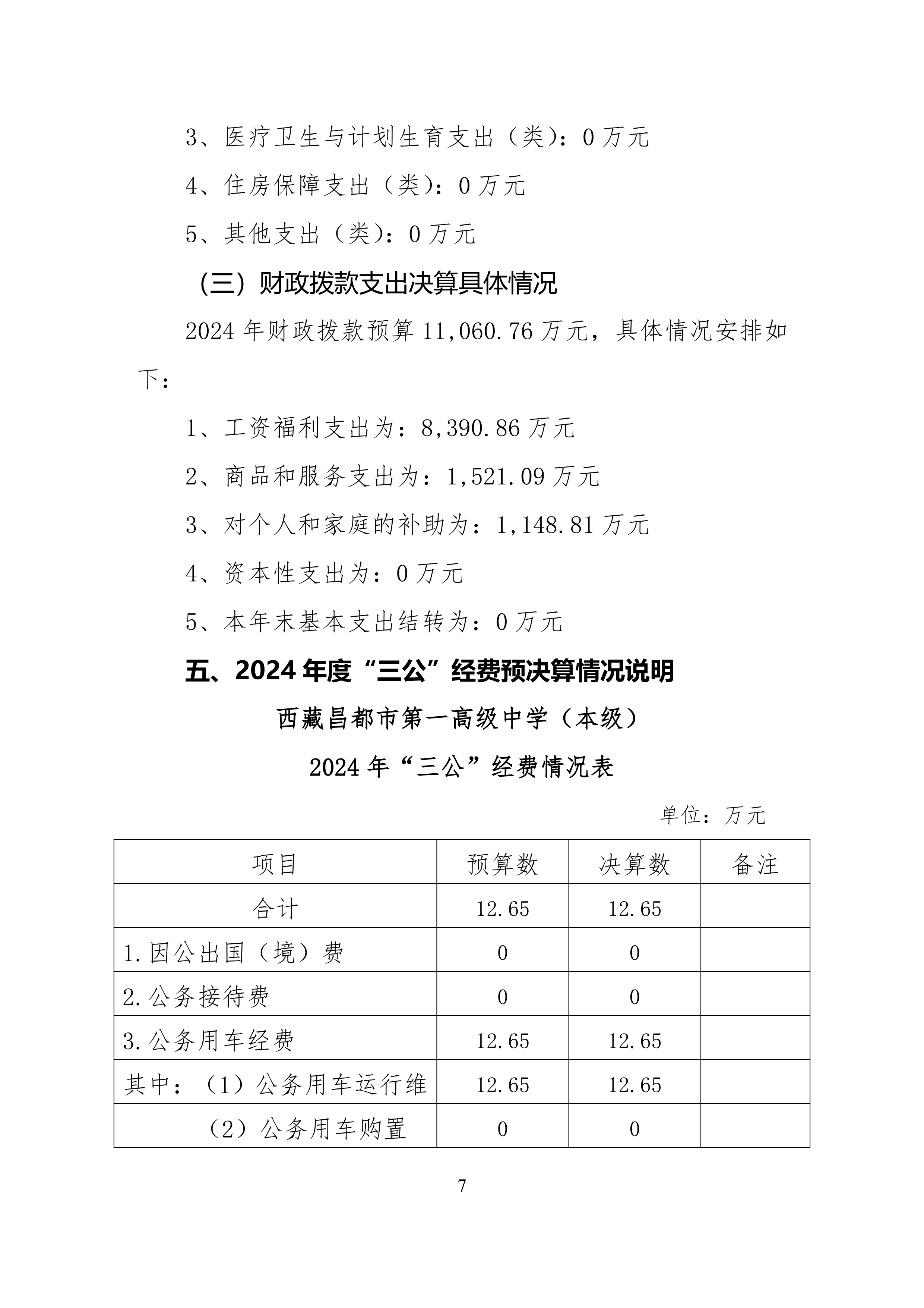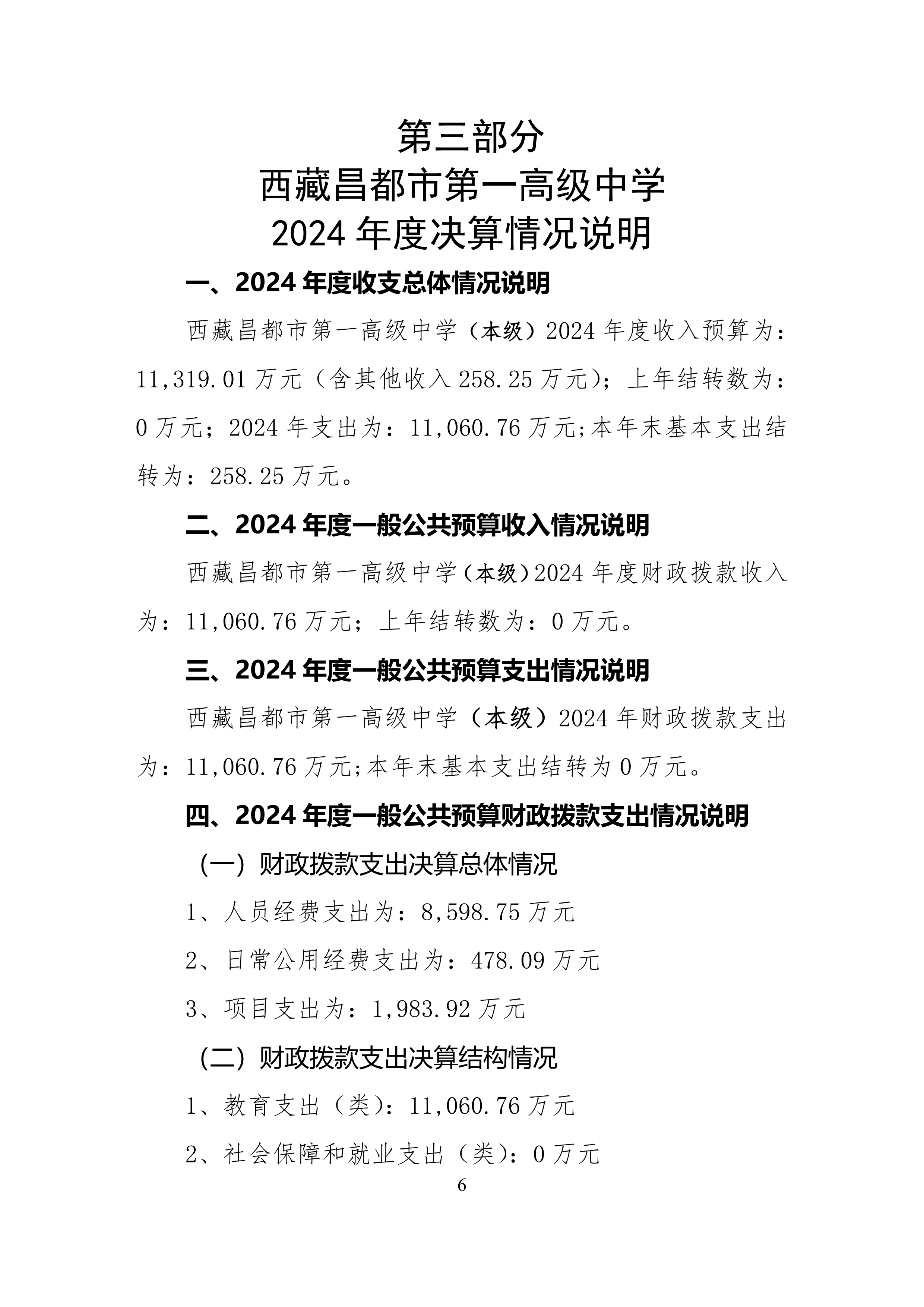 西藏昌都市第一高级中学2024年度部门决算公开