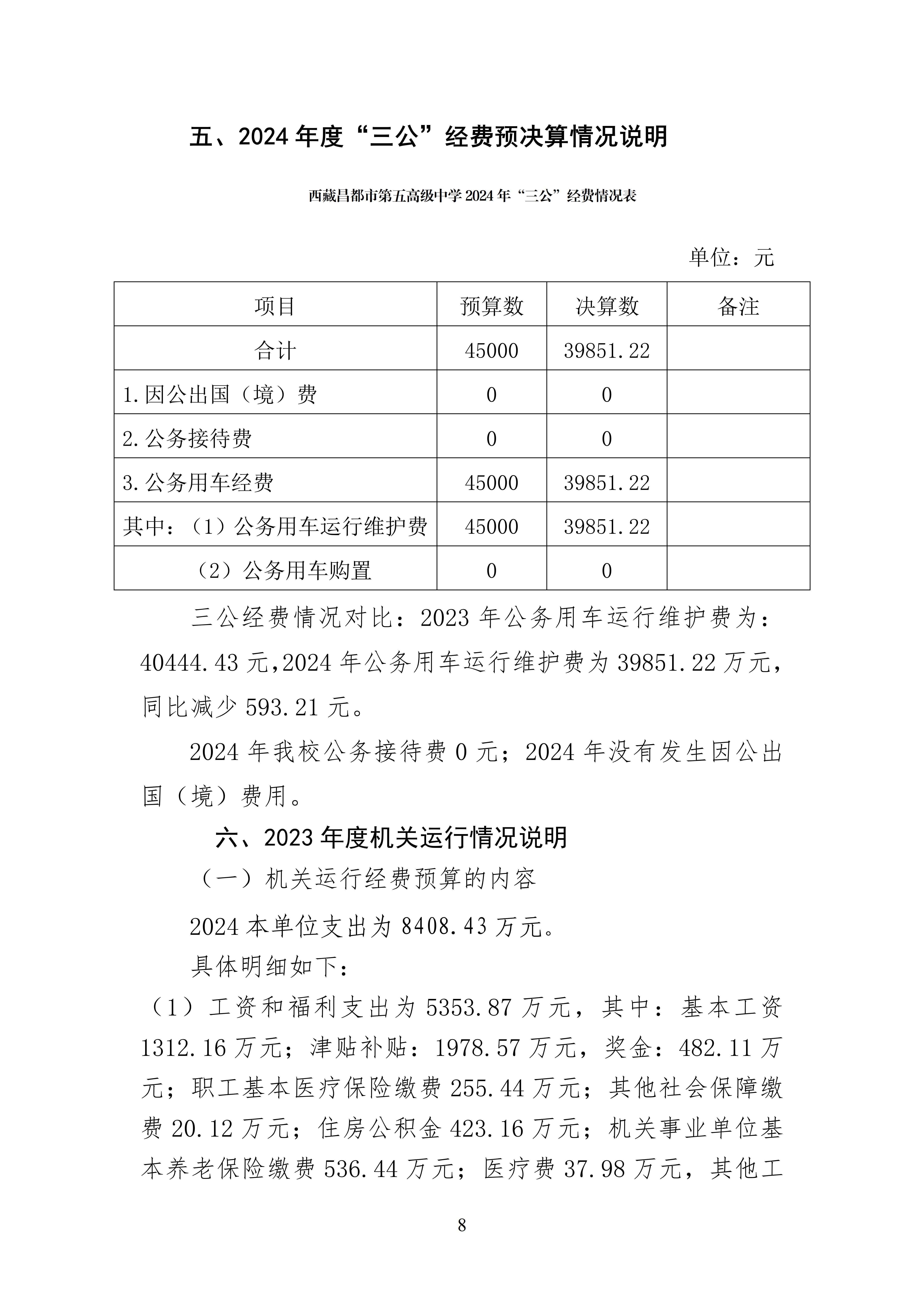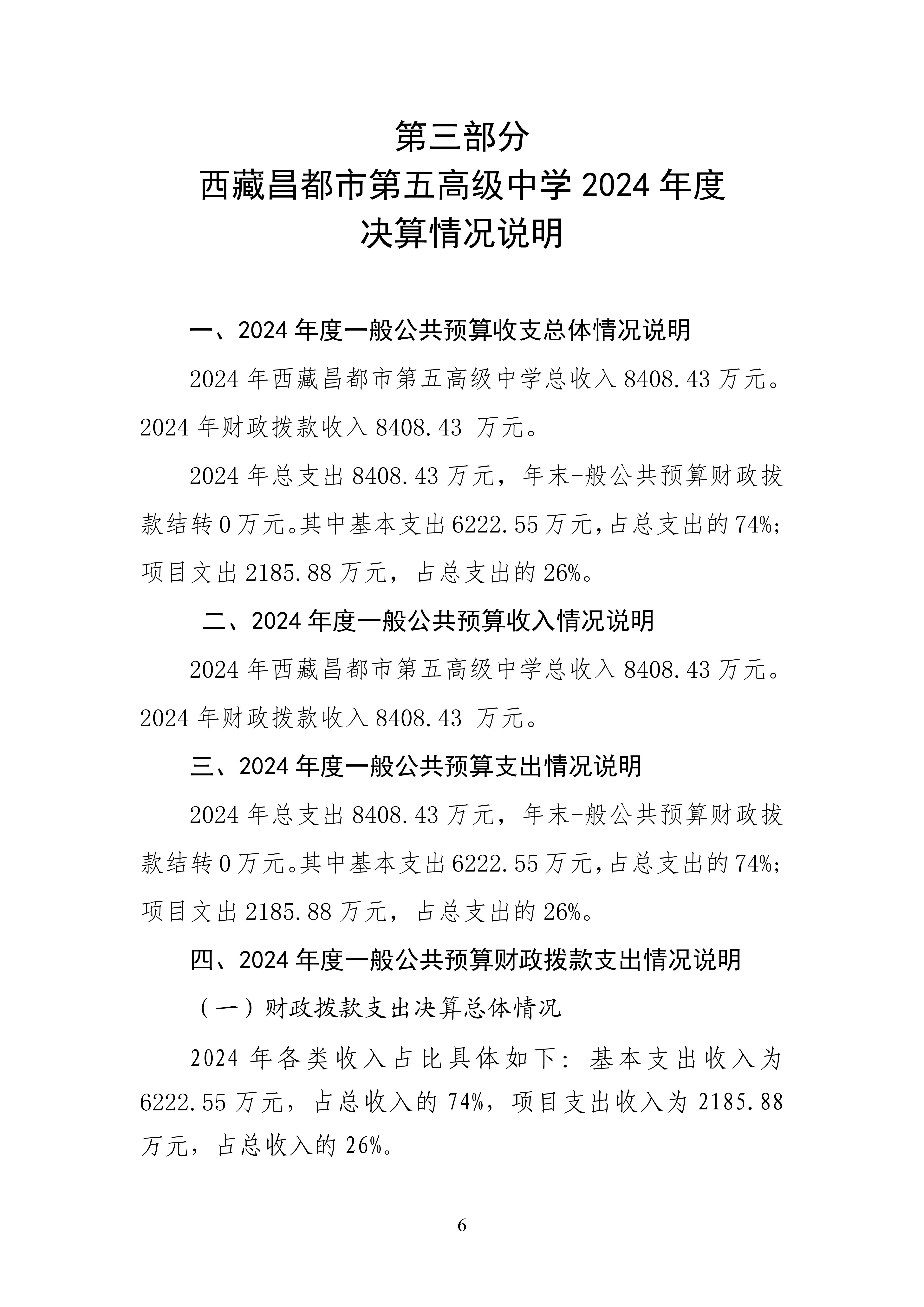 西藏昌都市第五高级中学2024年度决算公开