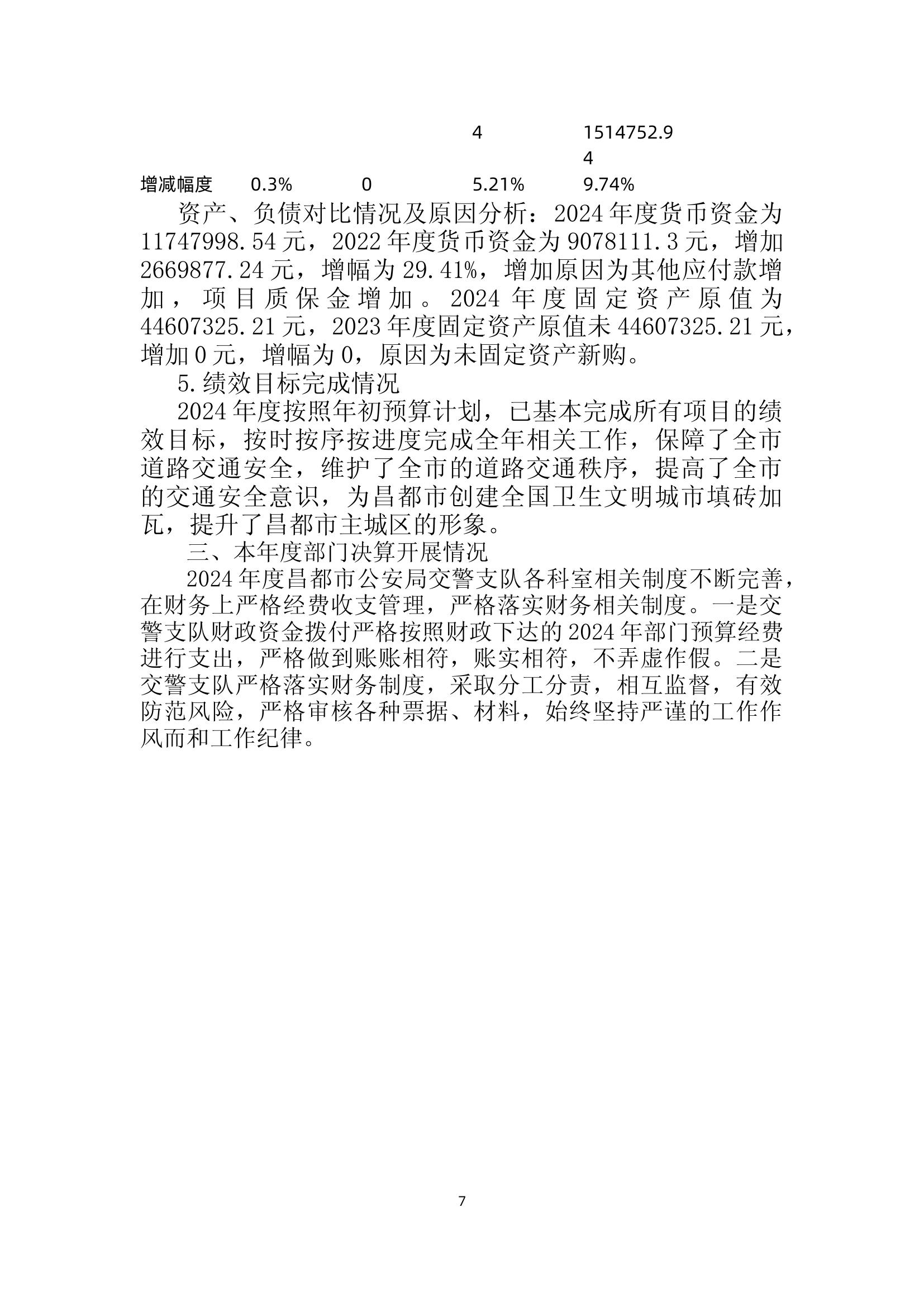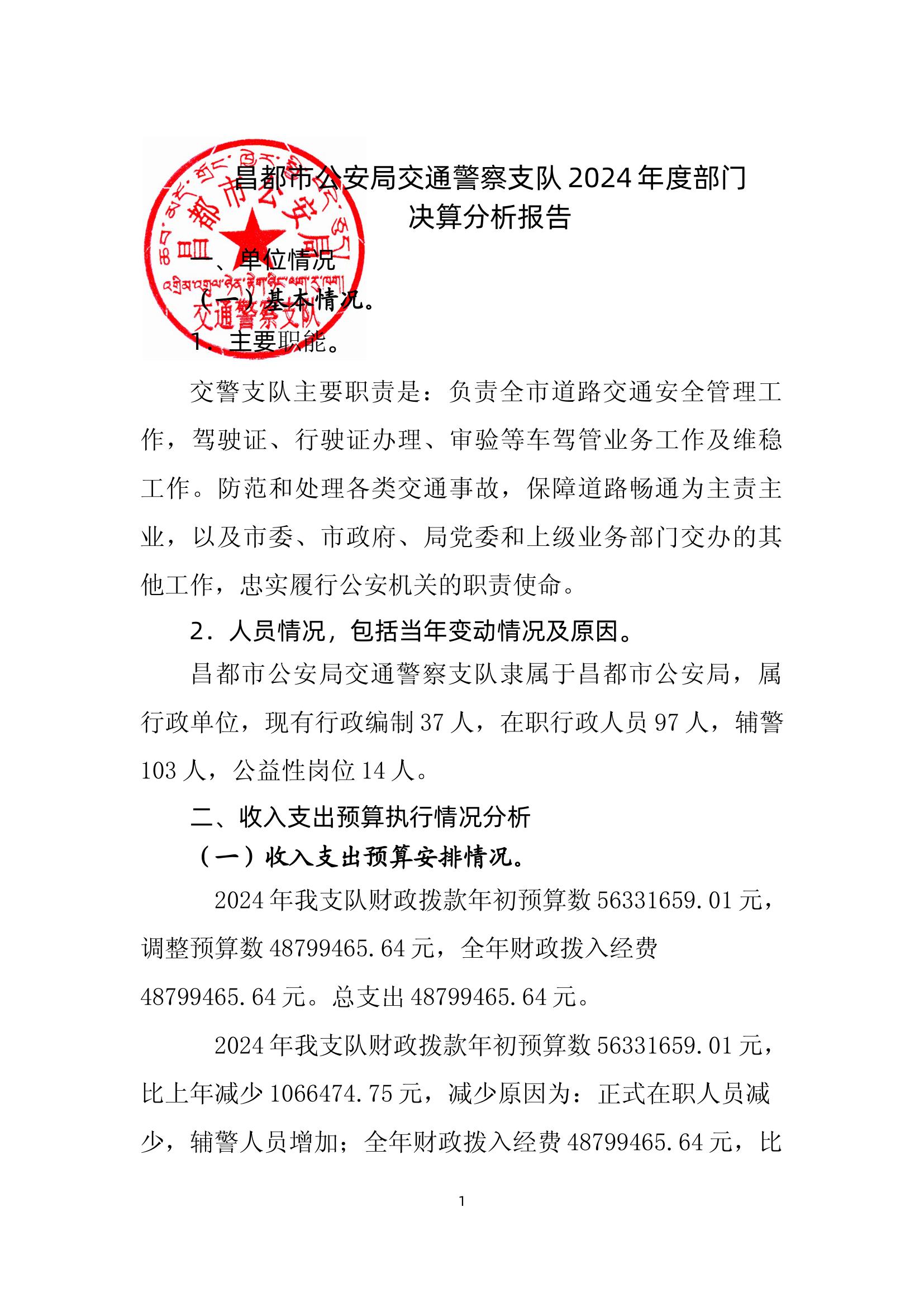 昌都市公安局交通警察支队2024年度部门决算分析报告