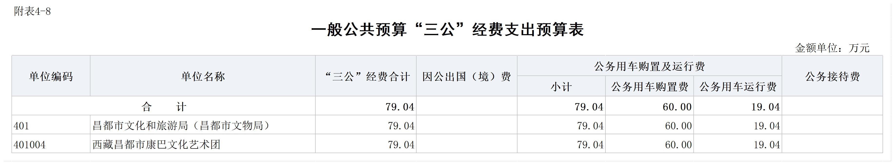 昌都市康巴文化艺术团2025年公务用车购置及运行维护费预算为79.04万元,较上年度19.04万元增加60万元,因为本年度预计购置演出用车一辆。