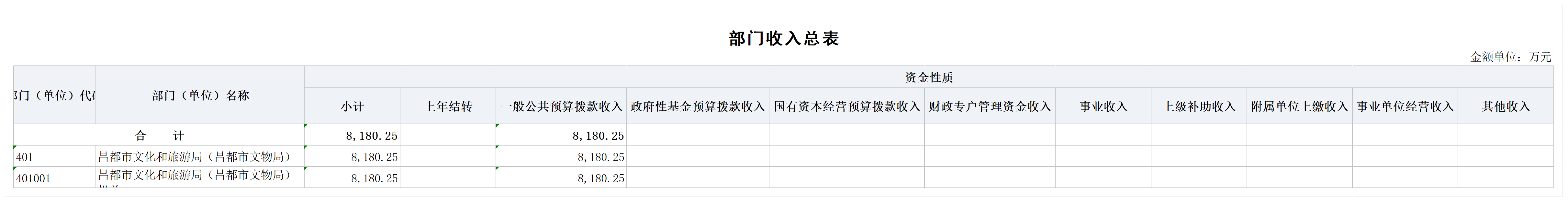 昌都市文化和旅游局(昌都市文物局)机关2025年部门预算公开表