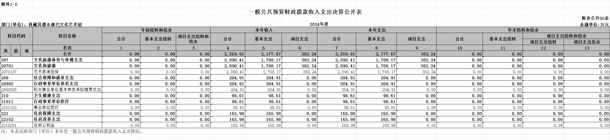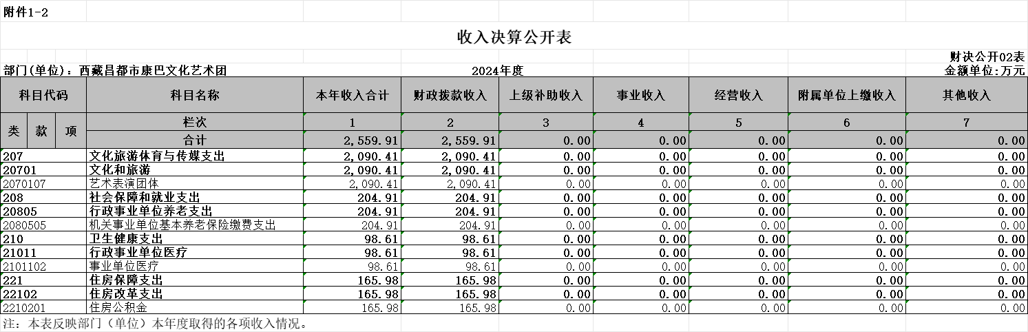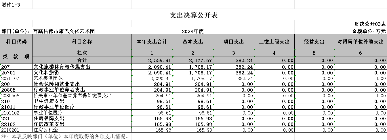 纳入西藏昌都市康巴文化艺术团2024年度部门决算编制范围的单位共1个,包括: